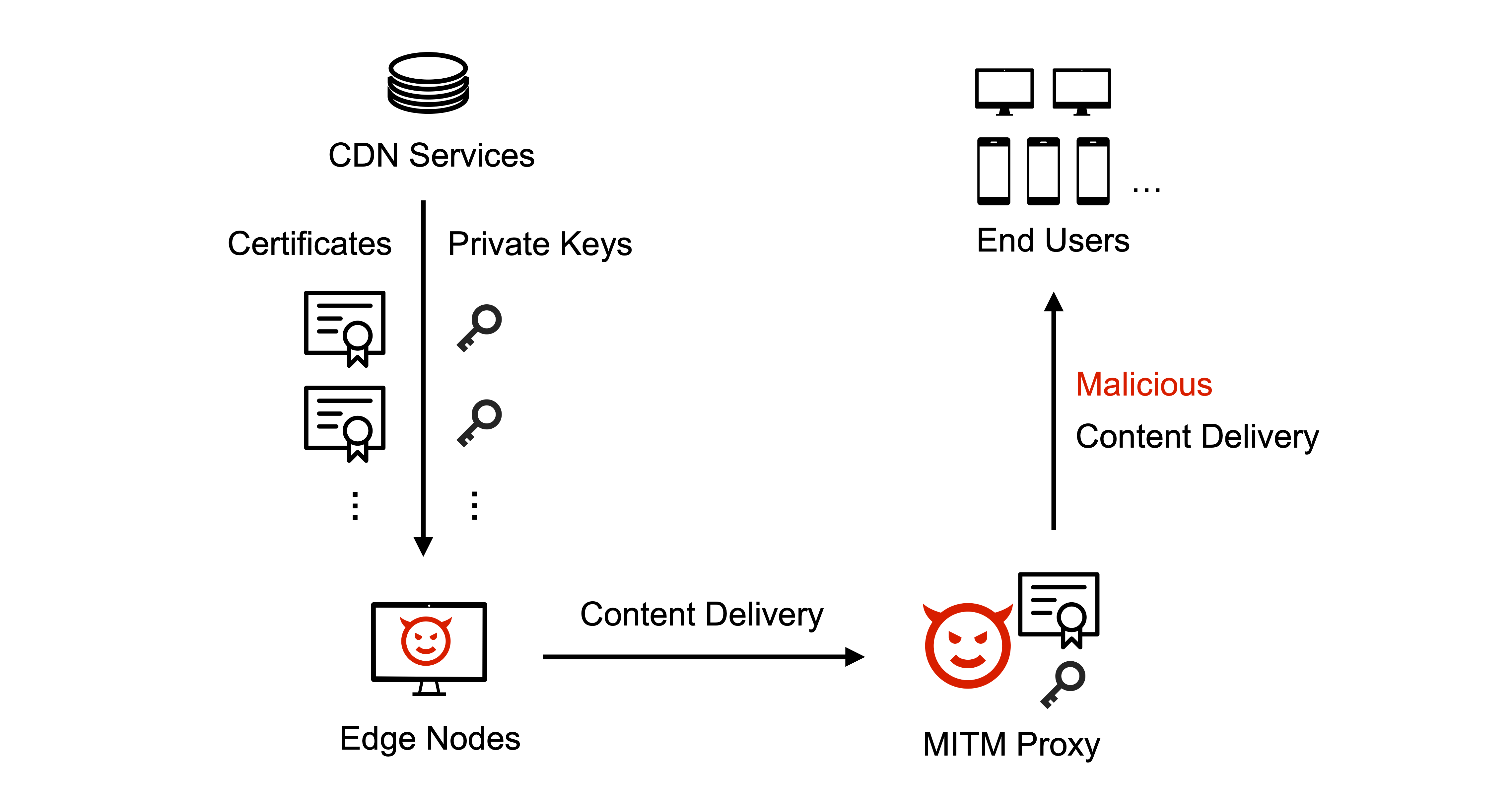 Once edge nodes operated by the attacker gain access to TLS credentials, it could control the content delivery flow.